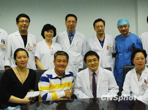 10月13日,经过14天的治疗和护理,赵本山恢复顺利,康复出院。据本山传媒工作人员介绍,出院前赵本山非常高兴,亲自下厨做了自己的拿手菜刀鱼炖豆腐,和身边的人一起品尝。图为出院前,赵本山和上海华山医院的医生和护士们合影留念。中新社发 本山传媒 摄