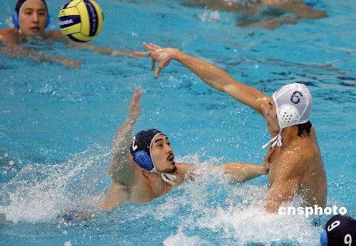 多哈当地时间十二月十四日晚,中国水球队在第十五届亚运会男子水球决赛中以九比八险胜日本队,夺得金牌。中新社发 毛建军 摄