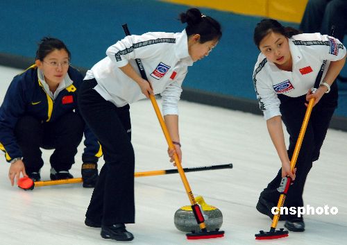 1月29日,长春亚冬会女子冰壶双循环赛中,中国队以9-1战胜哈萨克斯坦队。中新社发 廖攀 摄
