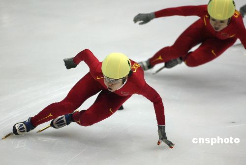 1月30日,长春亚冬会短道速滑女子500米A组决赛中,王濛摘得金牌,成绩为43秒869。赛后王濛举起国旗向观众示意。29日,女子1500米的比赛中王濛遭韩国选手阻挡未能超越成功,痛失金牌。中新社发 廖攀 摄