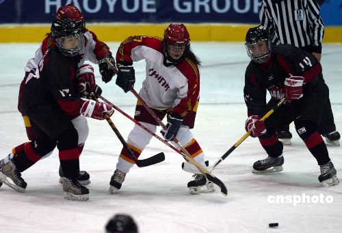 1月31日,第6届亚冬会女子冰球进入第三轮比赛。中国队(白)在两度落后的情况下两度扳平,但第三局被经验丰富的日本队又入两球,最终以2-4不敌对手首尝败绩,日本队则取得三连胜。中新社发 杜洋 摄
