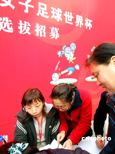 3月8日,在上海世纪广场举行的“喜迎07女足世界杯——上海赛区女子拉拉队现场选拔招募活动”吸引了众多申城女性前来报名,能在“三八节”报名当上女足世界杯拉拉队员,现场参加报名的女性均表示非常有意义。中新社发 汤彦俊 摄