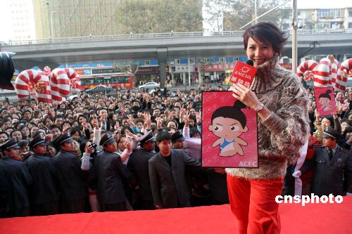 12月2日下午,香港影视红星蔡少芬到湖北武汉参加瑞士英纳格表的推介促销活动。蔡少芬靓丽登上舞台,受到江城市民的欢迎,她戴上新颖情侣表向观众展示,面对影视迷们的提问,她笑容回应。蔡少芬拿着影迷们赠送的礼物爱不释手。中新社发 李长林 摄