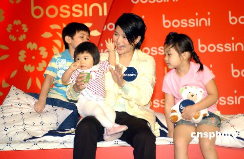 2月27日,香港影星、“靓妈妈”袁咏仪手抱小女孩,与小朋友们玩耍,气氛温馨。当日,初为人母的袁咏仪与众分享BB的扮靓心得,认为小孩子的衣服质量比款式更为重要,而她首选棉质。 中新社发 蔡蔓莉 摄