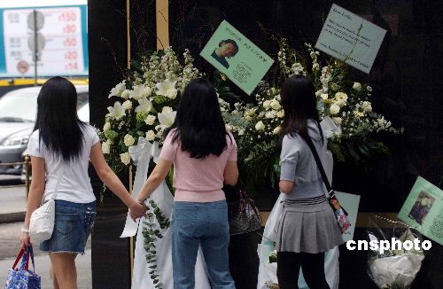 香港歌影红星张国荣逝世4周年之际,30日有歌影迷组织已在文华酒店旁设立悼念区,并会举行纪念活动。中新社发 谭达明 摄