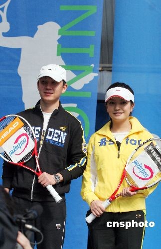 3月27日,2008“中网网动中国”推广活动在北京航空航天大学网球馆举行。赵薇、潘粤明作为2008“中网网动中国”的代言人出席该活动。中新社发 博芽影像 摄