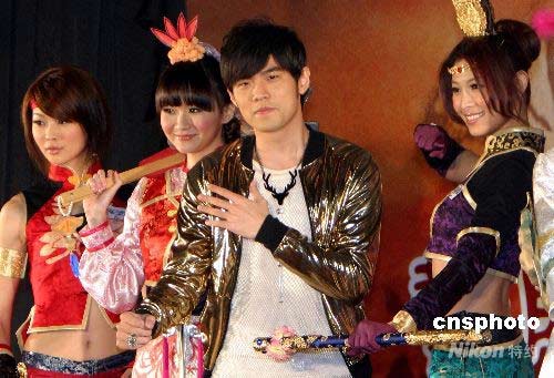 4月15日,在线游戏《真·三国无双Online》在台北举行公测发布会,周杰伦担任其2008最新代言人,并由其亲自操刀特地为此创作并执导MV《无双》。中新社发 杜洋 摄