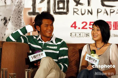 4月23日,奶茶刘若英、古天乐在台北为爱情结晶喜剧《一个好爸爸》造势,刘若英表示,因为本片让她收到从未和她住在一起的爸爸写给她的第一封信,信中表达了对失去她成长的生命片段感到遗憾的真情表白,让她十分感动。本片由成龙亲自监制,是张艾嘉继《20.30.40》后筹备三年的执导力作。她在此片突破常规染指黑帮的花花世界,用丰富和幽默真挚情感打动观众,成为导演生涯中最有创作力一次。男女主角古天乐、刘若英饰演一对经历廿年爱情试炼的夫妻,激情有默契,隽永而清新。《一个好爸爸》将于4月25日在台湾公映。中新社发 杜洋 摄