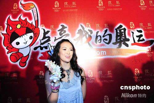 5月3日晚,当奥运圣火抵达海南三亚时,搜狐“点亮我的奥运”15城市点亮之旅启动仪式,在三亚亚龙湾红树林度假酒店隆重举行。搜狐火炬手、国际巨星章子怡及黄晓明、黄圣依等内地当红影视明星亲临现场助阵。据悉,将于4日在三亚举行的奥运圣火传递中,搜狐总裁张朝阳将是第11棒奥运火炬手,领跑“中国互联网第一棒”,章子怡将在“天涯海角”跑火炬传递的倒数第三棒。中新社发 潘旭临 摄