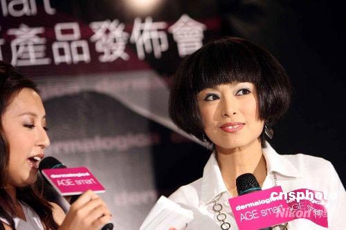 七月八日,香港资深艺人米雪在海港城出席一护肤品牌新产品发布会,与顾客分享保持青春活力的心得。中新社发 洪少葵 摄