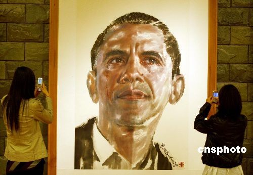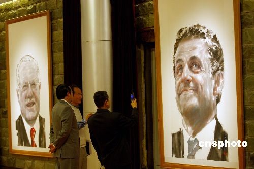 4月7日,为期一个月的“通往伦敦·20国集团峰会——于成松作品展”正在中国北京桥艺术中心展出。本次作品展所展出的23幅作品,均为出席20国集团伦敦峰会领导人的中国画肖像,由知名画家于成松以独特的中国画水墨艺术形式创作。中新社发 郑雄增 摄