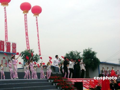 5月10日,心连心艺术团赴四川灾区慰问演出在绵竹举行,百余明星参与演出,为坚强的灾区群众送上祝福。中新社发 李乾波 摄