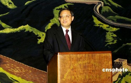 3月22日,中国驻美大使周文重在大华盛顿地区侨界为中国南方遭受冰冻雨雪灾害捐款仪式上说,拉萨打砸抢事件发生后,境外“藏独”分子遥相响应,不断冲击、破坏中国驻外使领馆,显示出境内外“藏独”分子分裂祖国,破坏北京奥运的图谋,也再次暴露达赖顽固谋求“藏独”的真实面目。中新社发 邱江波 摄