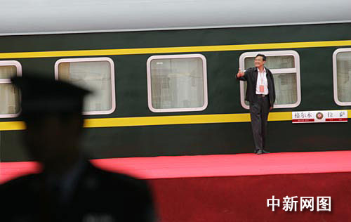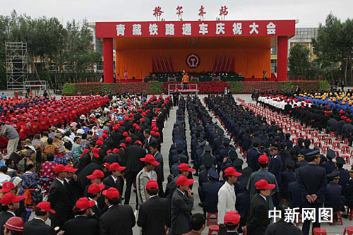 七月一日上午,青藏铁路通车庆典在青海格尔木火车站南广场举行。图为通车庆典会场。中新社记者 武仲林 摄