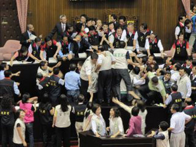 民进党阻挠表决ECFA 台"立法院"爆肢体