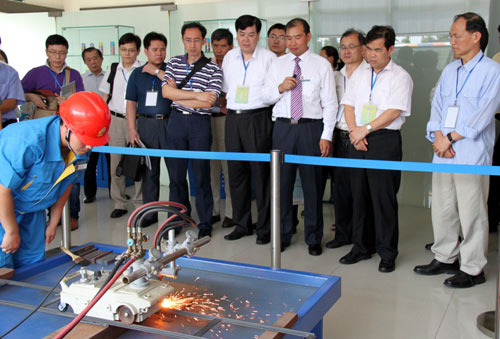 图:出席两岸经贸文化论坛的台湾代表考察新能源