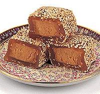 贡糖起源于花生与麦芽糖的组合,经过烘焙的花生在气味最浓郁的极佳状态下,以高比例与纯正麦芽糖混合,然后施以人工捣碎、夹缠,再经历温揉渗合流淌,最后切块成形。金门贡糖,随厦门制饼师传入小金门,并广被一般糕饼店制成品茗茶点。
