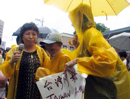 中新网7月16日电 曾被日本强迫征调为日军慰安妇的台湾阿嬷吴秀妹,今天由台湾“妇女救援社会福利事业基金会”董事长叶毓兰及董事陈淑丽等陪同,冒着大雨在首尔市日本大使馆前高唱“雨夜花”,抗议日本军国主义摧残她的青春,并要求日本政府公开道歉及给予赔偿。