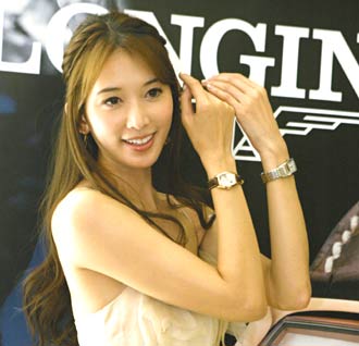 名模林志玲昨天南下高雄为浪琴表代言,穿着一身粉嫩低胸洋装露面,让现场民众为之惊艳。(图片来源:联合报)
