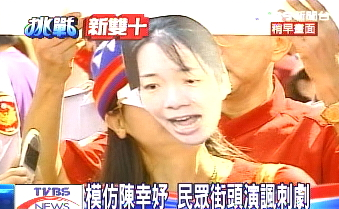 据台湾TVBS报道,陈幸妤多次镜头前脱口而出的话语,通通被改编,扁家成员全都点名,连前“调查局长”叶盛茂也轧上一角,但就因为事前没申请,遭警方举牌警告。