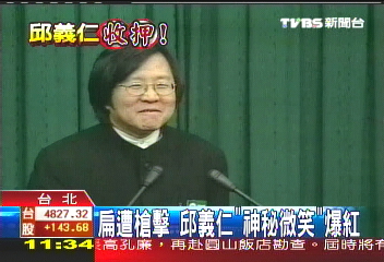 3·19枪击案发生的第一时间,邱义仁更出面微笑召开记者会,说子弹就在陈水扁身上,这也成了他最著名的“秘书长微笑”。(图片来源:台湾TVBS)