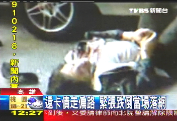 中新网11月10日电 据台湾TVBS报道,高雄一名男子,疑似为了偿还卡债持刀抢劫,没想到被害人奋力抵抗,该男子落荒而逃,却撞上停在路边的车辆,当场骨折倒地不起,警方说这就是“贼星该败”。