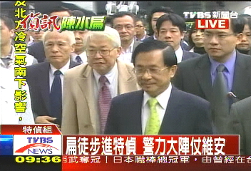 陈水扁抵达台检方特侦组应讯。图片来源:台湾TVBS