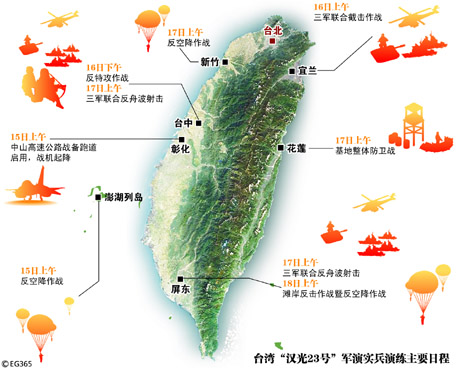 其实对于在台湾出生、长大的我们,对军事演习是再熟悉不过的了。小时候,因为两位姑丈都是国民党的军官,常年驻守部队,不太常回家。如果碰上军事演习的时候,那自然是看着姑妈神情紧绷,而电视报纸往往大肆报道演习相关新闻,为的是“反共抗俄、宣扬国威”……