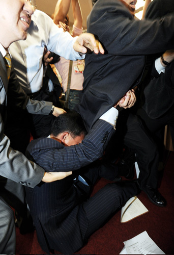 组图:陆生赴台法案初审通过 蓝绿再爆冲突(2)