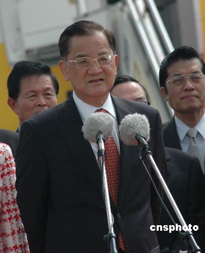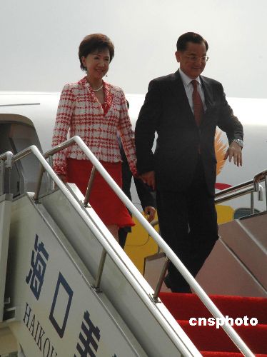 中国国民党荣誉主席连战一行十月十六日下午抵达海口美兰机场,出席十七日在博鳌举行的两岸农业合作论坛。中新社发 王辛莉 摄