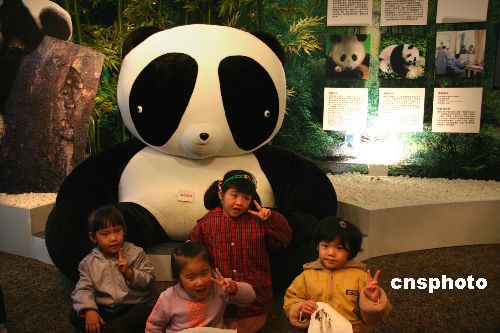 十二月十四日,“天府之国——巴蜀文化精品展”在台北开幕,展场中的卧龙熊猫展览区,孩子们争相和来自熊猫故乡的大熊猫玩偶合影。该展览由四川省海峡两岸交流促进会和台北新光三越百货联合举办,一批巴蜀工艺美术大师现场为台湾观众展示技艺。中新社发 徐长安 摄