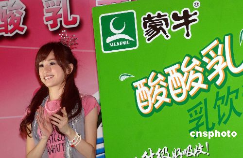 一月十八日,台湾艺人王心凌出席蒙牛乳业在北京举办的蒙牛酸酸乳升级产品发布会,并为其新品代言。中新社发 张宇 摄