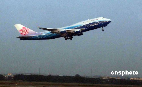 二月十三日,二○○七年两岸春节包机首航。七点二十四分台湾华信航空公司AE八七一航班拔得头筹,从台北桃园机场飞往上海。中新社发 陈立宇 摄