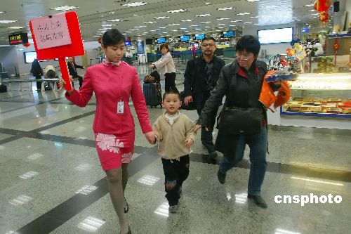 2月15日,欲乘坐台湾立荣航空公司厦门至高雄航班的最后几名乘客在地勤人员的指引前往登机。厦门机场迎来首个2007两岸春节包机。中新社发 冬树 摄