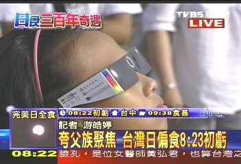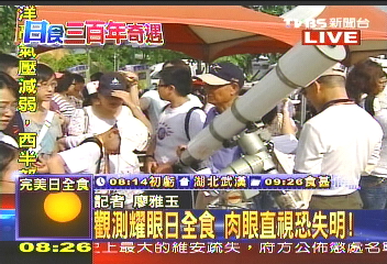 一大早,台湾岛内的电视台就开始通过直播报道,外派记者纷纷从成都、重庆、武汉、杭州等地发回报道,岛内观众通过第一时间如临现场欣赏到日全食盛况。