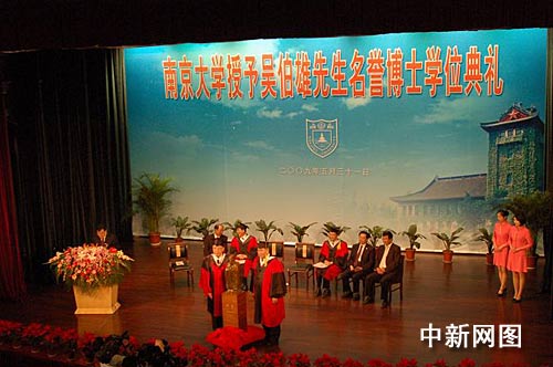 中新网南京5月31日电 中国国民党主席吴伯雄今天上午在南京大学获授荣誉法学博士学位,并发表答谢演讲。