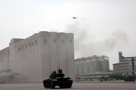 中新网5月16日电 台军汉光演习反特攻作战演练,今天下午在台中港二号码头举行,动员三军参演部队五百余人及各式飞机、装甲车导弹等。