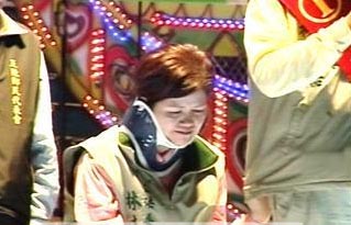 祭出悲情牌,候选人之妻负伤为丈夫站台助选。(图:台湾东森新闻)