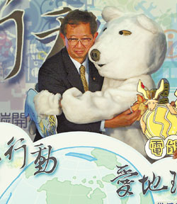前“中研院院长”李远哲担任召集人的“中研院”环境与能源小组,18日提出能源建言,重点之一就是支持核四续建。图为李远哲去年参加“学习.行动.爱地球”特展开幕,他拥抱北极熊布偶,呼吁民众重视全球暖化及世界能源危机。