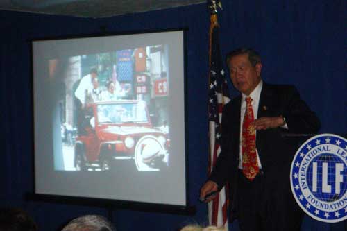 李昌钰在华盛顿出席一项活动中,分享他数十年来的办案经验,也谈到受托调查台湾三一九枪击案。(“中央社”图)