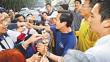 夹在马迷当中的马英九连签名笔都快拿不住,他面有愠色突然扮起小学生风纪股长大喊:“我数到5再不排好队,我就走了。”这招显然对马迷起不了作用,最后马英九一一为各人签名,但气得嘴里直嘟囔:“我明天开始不签了。”