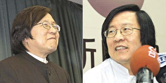 邱义仁的“神秘微笑”(左:2004年“3•19”的微笑 右:2008年金援丑闻案的微笑)(图:台湾《联合报》)