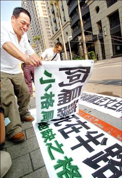 针对陈水扁洗钱案,一位台湾民众带着抗议布条在陈水扁住所表达愤怒与不满。(来源:台湾“自由时报”)