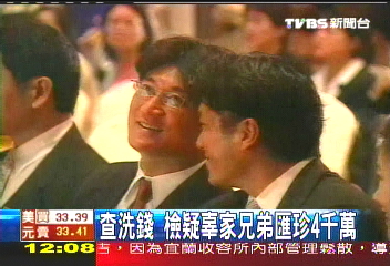 台检方怀疑中信集团少东辜仲谅、辜仲莹,疑似在2006、2007年间,用相关账户陆续汇了100多万美金,相当于4000万台币,到陈水扁夫人“助理”蔡铭哲和力麒集团负责人郭铨庆胞妹郭淑珍等陈水扁家族海外人头账户。(图片来源:台湾TVBS)