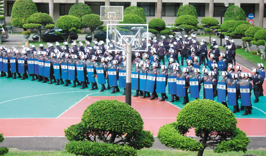 台当局“警政署”掌握情资显示一○二五游行有治安之虞,连日调集保大警察演练镇暴勤务,应付各种可能突发状况。(图片来源:台湾《联合报》)