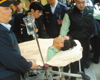 陈水扁禁食到昨天第七天,瘦了四公斤。他昨天大部分时间都在睡觉或休息,下午体力较好,曾坐起看律师郑文龙送给他看的抗告状,还可以不用他人扶持,自己上厕所。