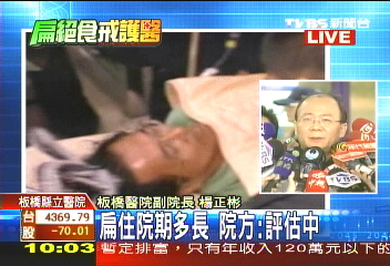 陈水扁生命现象渐趋稳定,仍得住院观察,究竟会住多久,医院话说的很保守,强调无灌食计划。图片来源:台湾TVBS