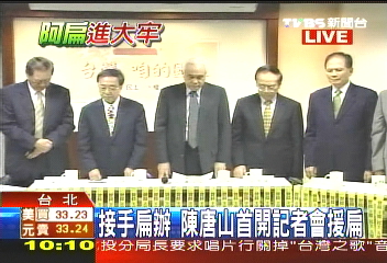 中新网11月18日电 据台湾TVBS报道,陈水扁遭收押,陈水扁办公室活耀依旧,由前台湾前“总统府秘书长”陈唐山接手主持,陈水扁办公室召开记者会声援陈水扁。