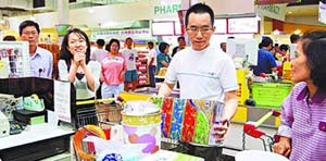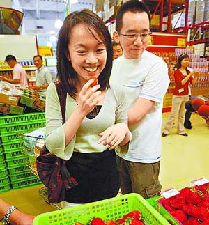 陈致中夫妇搬到高雄已经四天,22日下午原本要去姑姑家探视阿嬷,因不好停车,临时改到大卖场购物,两人在量贩店采买,一小时里就花了5633元,添购拖鞋、水管、垃圾袋、垃圾桶等家用品,还在卖场人员推销下买了一盒草莓。