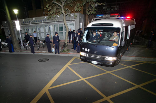合议庭结束庭讯后陈水扁还押看守所,26日继续开庭。